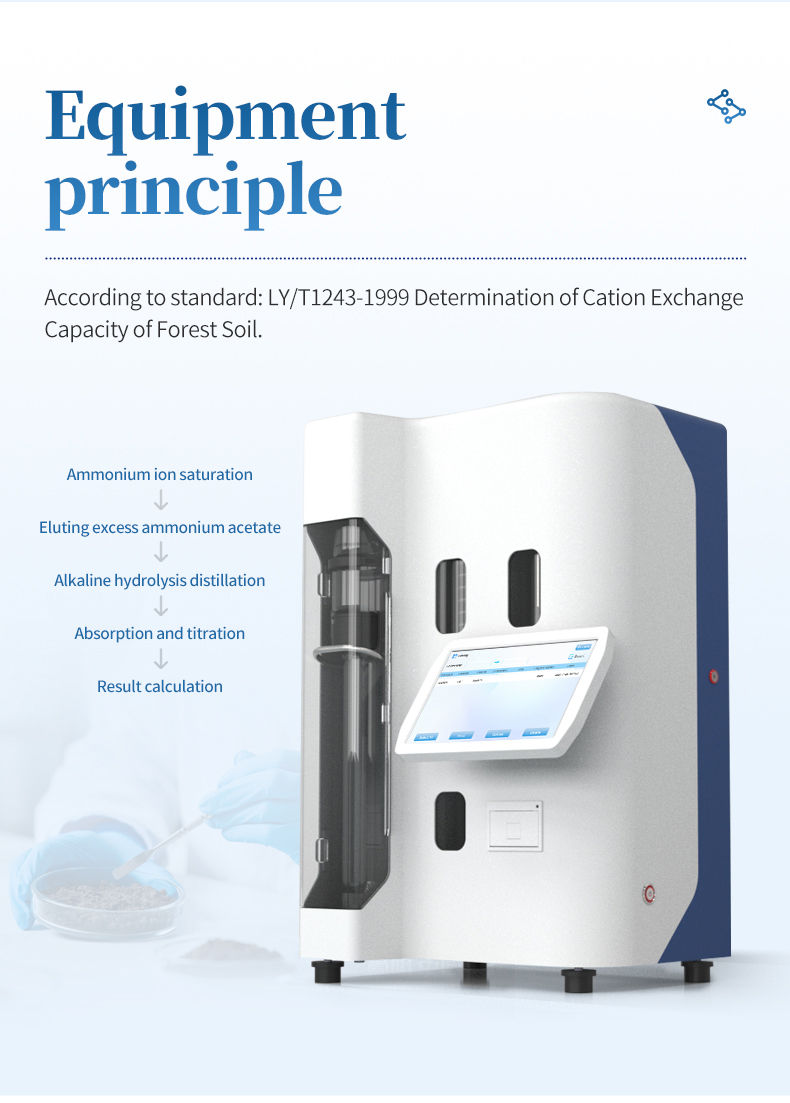 According to "Determination of Cation Exchange Capacity of Forest Soils" (LYT 1243-1999), the soil is repeatedly treated with a 1 mol/L ammonium acetate solution to make it ammonium ion-saturated. The excess ammonium acetate is washed away with 95% ethanol, and then magnesium oxide is added. Distillation is carried out using the nitrogen determination distillation method. The ammonia distilled is absorbed by a boric acid solution and titrated with a standard acid solution. The cation exchange capacity of the soil is calculated based on the amount of ammonium ions.
