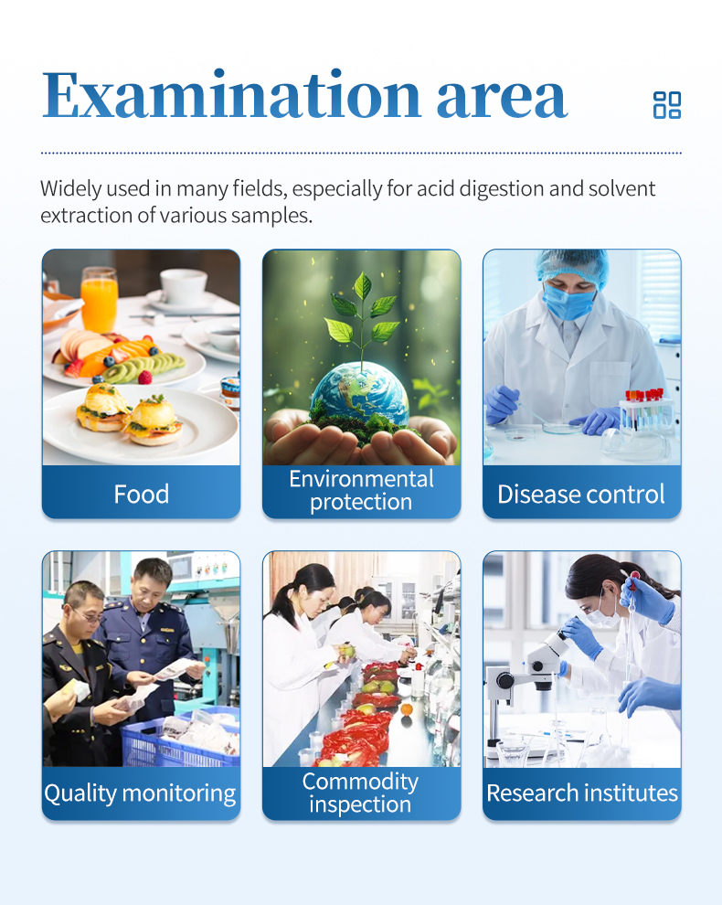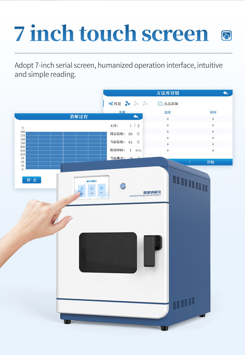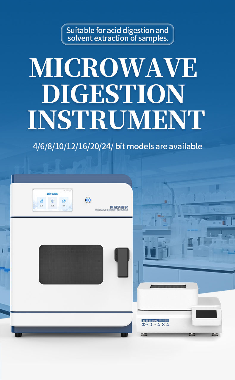 Microwave Digester is a device used for sample pretreatment, which rapidly and effectively digests samples through microwave heating technology. This instrument is widely used in fields such as food, environmental protection, disease control, quality supervision, commodity inspection, research institutes, etc. It is particularly suitable for acid digestion and solvent extraction of various samples.
