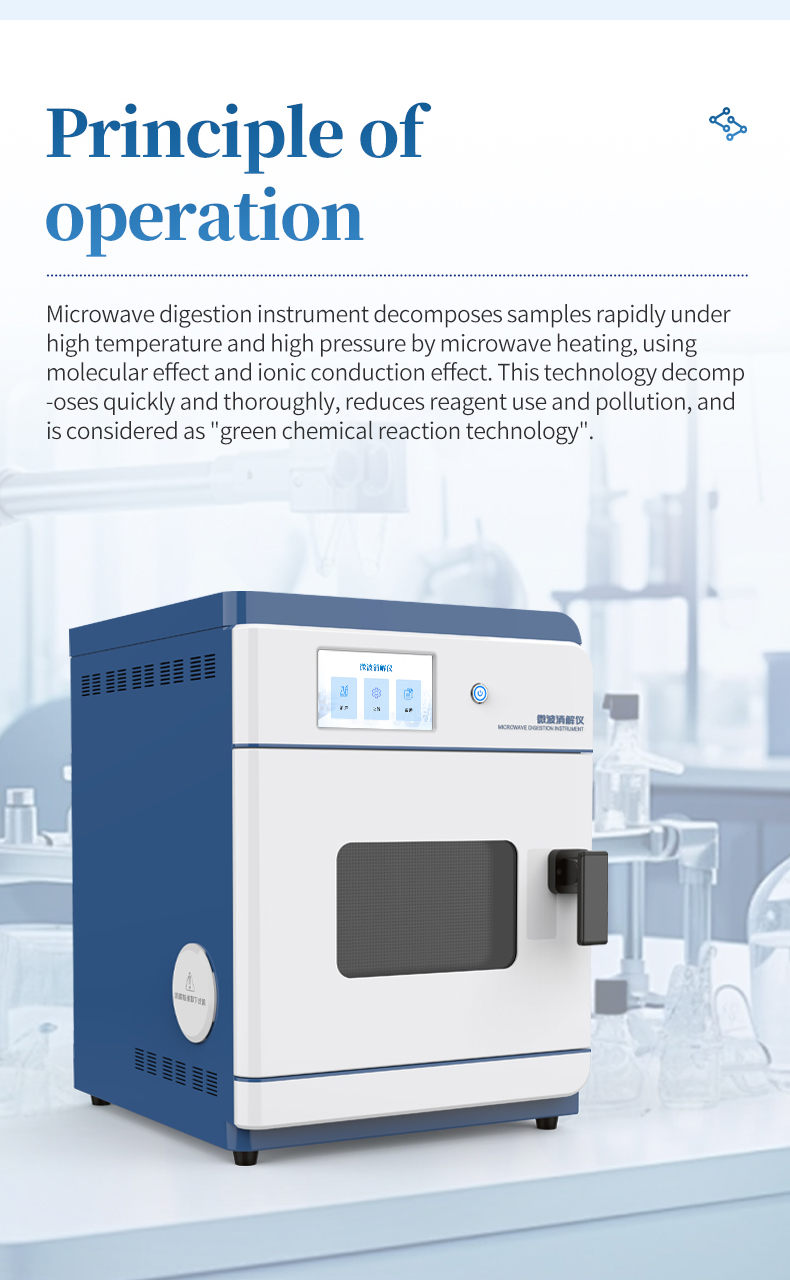 The advantages of microwave digestion technology include fast and complete sample decomposition, low loss of volatile elements, low reagent consumption, simple operation, high processing efficiency, low pollution, and low blank. It is known as the "green chemical reaction technology".