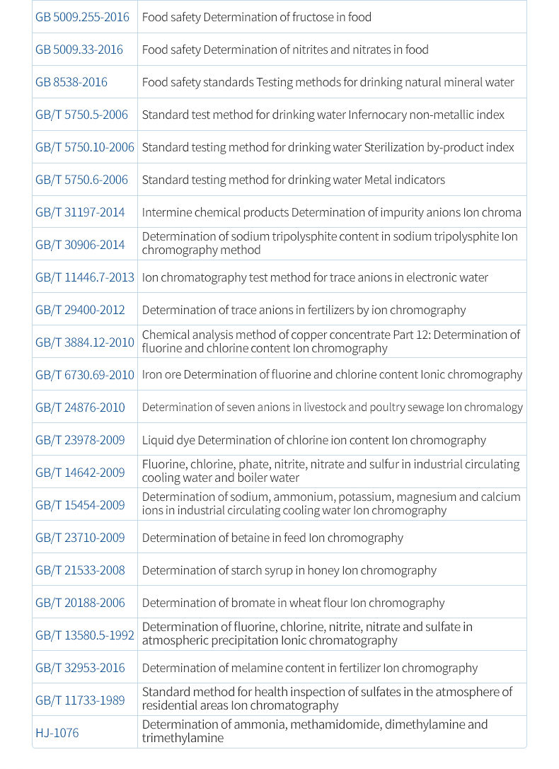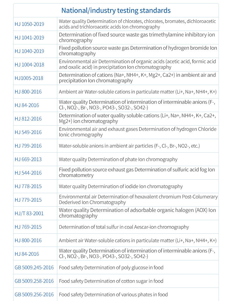 9 Separation ability: (Different anion and cation separation columns are configured separately, and the types of ions that can be separated are:)
