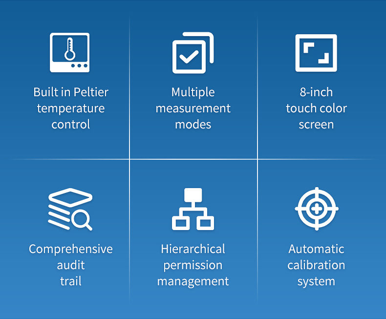 2: To ensure the measurement accuracy of the results, the instrument temperature control technology adopts built-in Peltier instead of traditional flow cells;