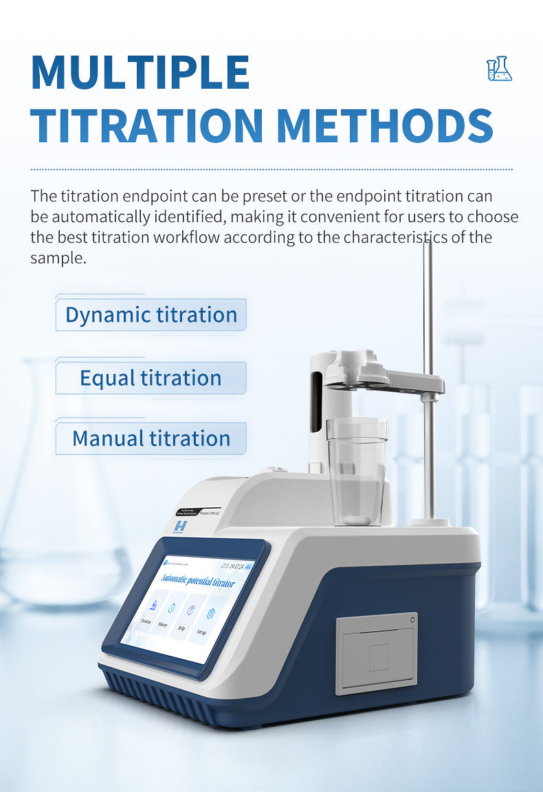 4. Supports dynamic titration, equal titration, and manual titration methods, with pre-set titration endpoints or automatic identification of endpoint titration, making it convenient for users to select the optimal titration workflow based on sample characteristics;