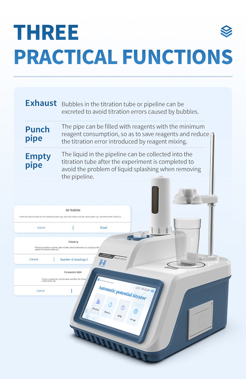 (1) Exhaust, which can remove bubbles from the burette or pipeline to avoid titration errors caused by bubbles;