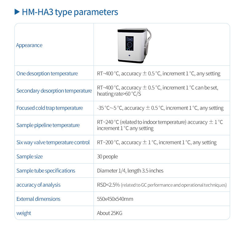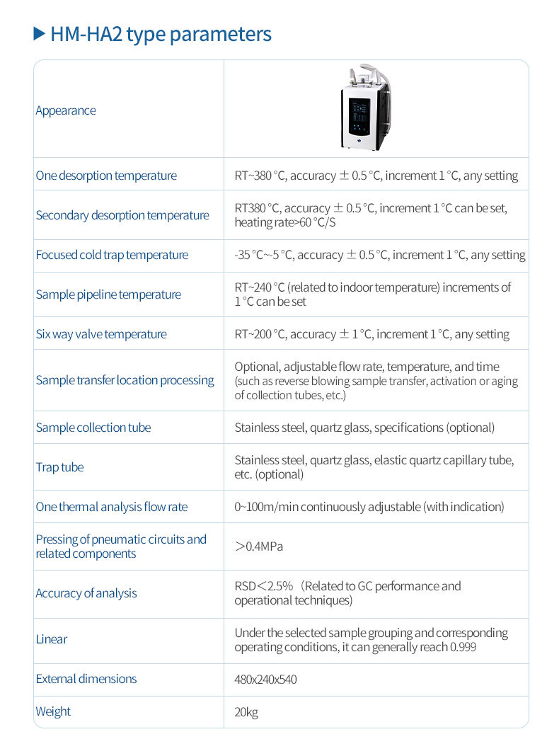 10. Desorption tube specifications: Φ6mm, length > 120mm