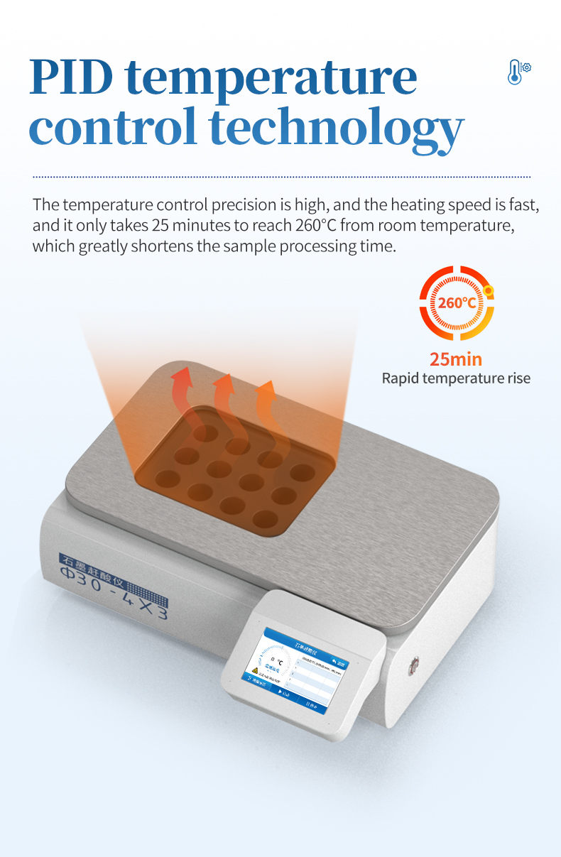 Adopting PID temperature control technology, with high temperature control accuracy and fast heating speed, it only takes 25 minutes to reach 260 ℃ from room temperature.