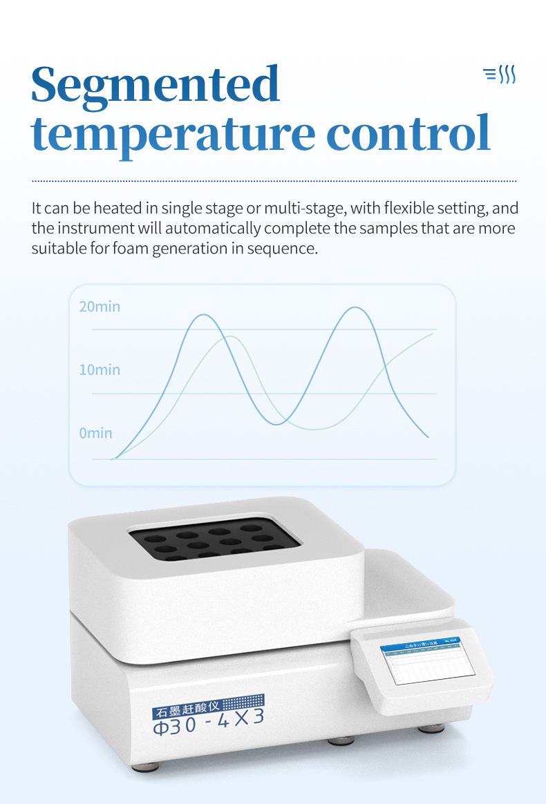 Segmented temperature control setting, which can be single stage heating or multi-stage heating, with flexible settings. The instrument will automatically complete the process in sequence. It is more suitable for samples prone to foam.